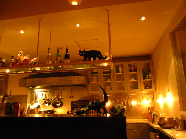 カウンターにはビンテージデニムのような風合いの藍染めでつくられたハンドメイドのかいじゅう!?です。