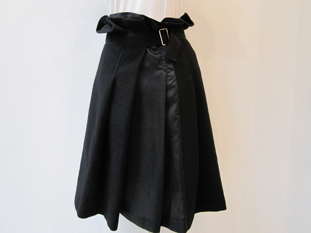 ウール素材のざっくりとした風合いの、はき心地暖かなラップスカート。