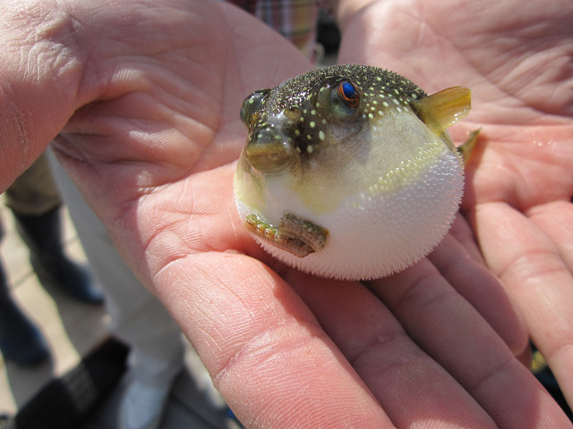 ブルブルッて、釣れた魚は好物のフグです。