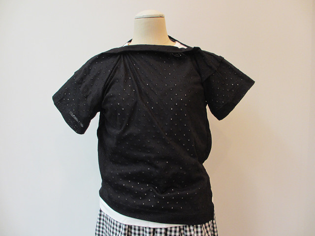水玉柄に刺繍された透け感のある薄手綿天竺素材のカットソー。