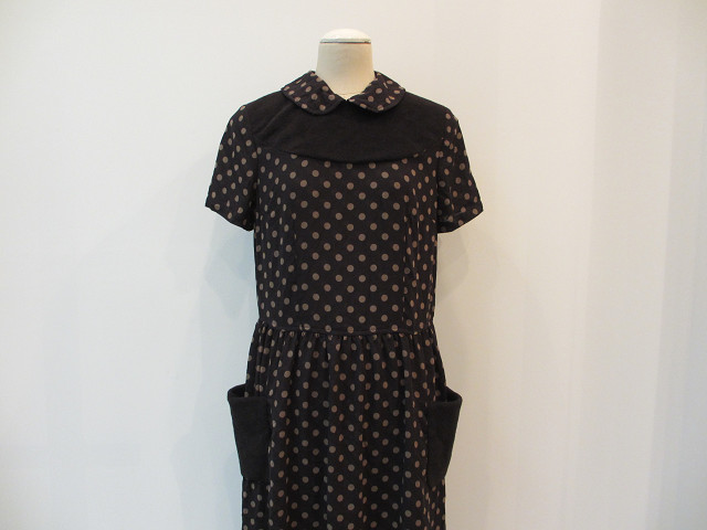 やわらかな質感のエステルジョーゼット素材で仕立てた水玉柄のワンピース。