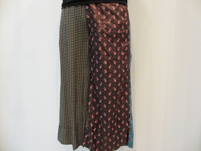 ペイズリー模様や花柄、マルチプリントを左右前後にミックスさせたパンツ。