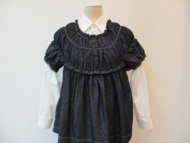 カジュアルな素材感ながらたっぷりのギャザーが可愛らしさのある一枚。