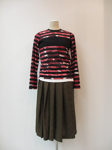 ボーダー柄に花柄プリントを転写したTシャツ。
