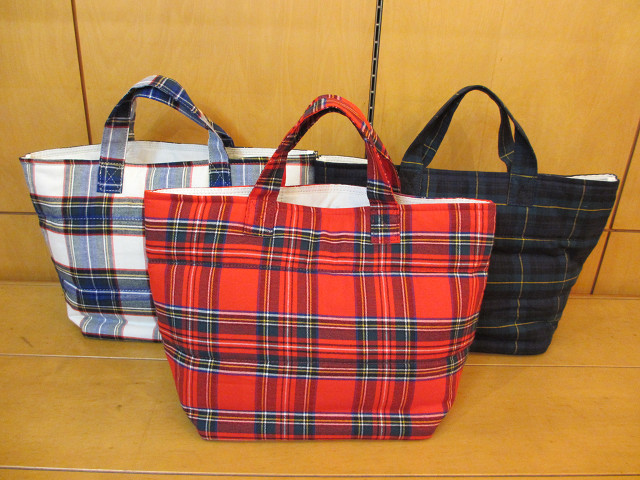 中綿入りでふっくらとした暖かみのあるタータンチェック柄バック。