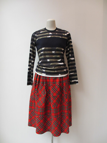 肌触りのよいエステルレーヨン素材で仕立てたタータンチェック柄スカート。