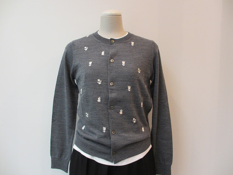 着こなしにメリハリを効かせる小花柄刺繍がアクセントを効かせて。