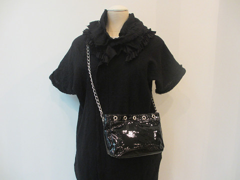 光沢感のあるエナメル素材(合成皮革)で仕上げたショルダーバック。