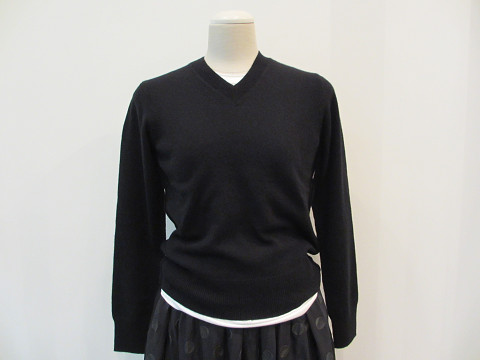 顔回りをスッキリと見せてくれるキレイな浅目のVネックに