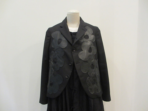 レザーを使用した花柄モチーフのデザインが遊び心のある一枚。