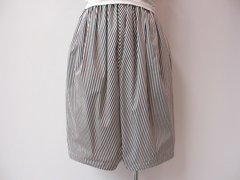 ギャザーたっぷりのウエストから、ふんわりと広がるフレアシルエット。