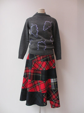インターシャ編みで表現されたフルーツ柄のニットプルオーバー。