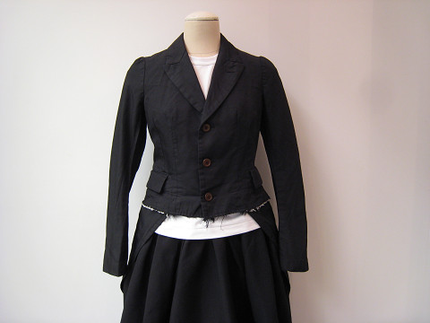 バックシルエットの長い、前後の着丈に変化を付けた燕尾風デザイン。