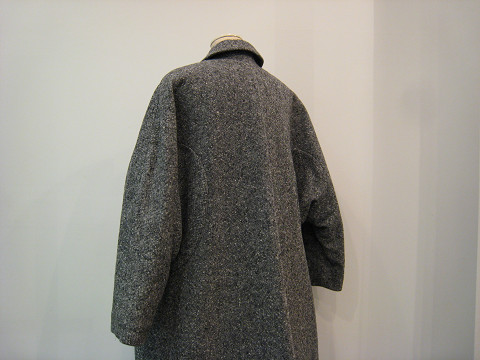 ワイドシルエットが特徴的なウールツイード素材で仕上げたコート。
