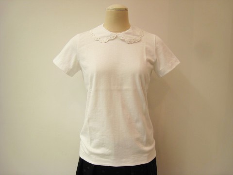 刺繍を施した綿ブロードの丸襟がベーシックな中に表情をプラス。