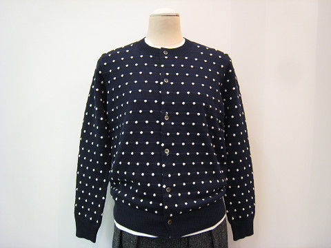 小ぶりの水玉柄が上品かつ愛らしいウールニットカーディガン。