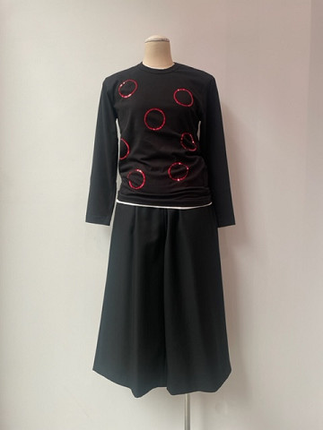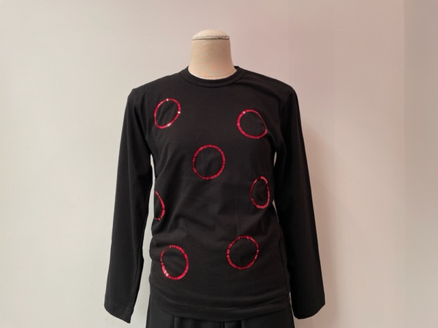 着こなしにメリハリを効かせるスパンコール刺繍を施したTシャツ。
