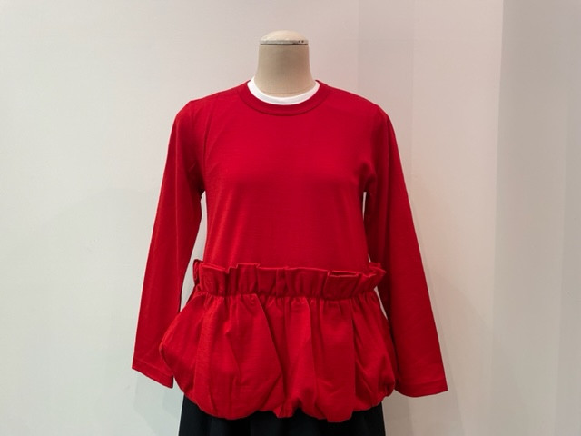 ふんわりと膨らむ裾のバルーンシルエットがメリハりの効いた一枚。