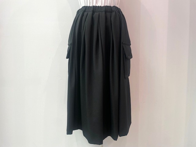 やや厚みのあるウールギャバジン素材で仕立てたフレアスカート。