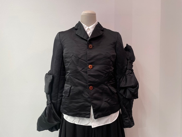 袖に付いたリボンザインが華やかさと上品さを効かせた一枚。
