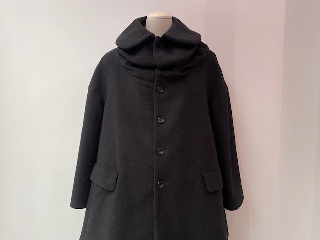 包み込まれるような丸みのある大きな襟が存在感のある一枚。