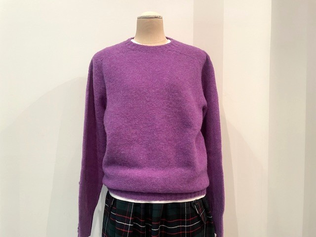 暖かみのあるシェットランドウール天竺素材のプルオーバーニット。
